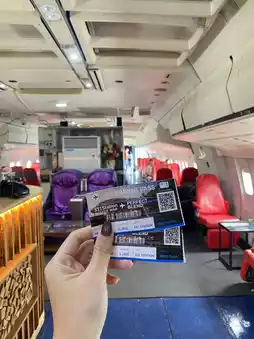 This is another fun place to take pictures. The entrance fee is 100 baht, and you can exchange it for 1 drink (I recommend green tea or fresh fruit soda, it’s very refreshing). The cafe is actually in a plane. It feels like you’re traveling abroad. There are many photo spots, including the Boarding Pass corner and the cockpit corner. Or take pictures outside the shop and get a full view of the planes. ✈️