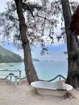 This place is perfect for escaping the hustle and bustle of Pattaya and chilling out at a beautiful cafe by the sea. The water is very clear. You don't have to cross the island. You can drive to the shop.