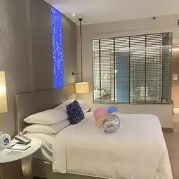 The bed sucked my soul. There were 2 bottles of water in the bathroom and 2 bottles in the room.