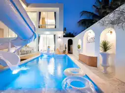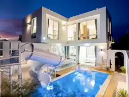 🏖️🏠🎊Cyrus House, a super cool pool villa with cute decorations, a clean house that meets the needs of relaxation. It has complete facilities, a private swimming pool, a 10-meter slide, karaoke, a pool table, complete kitchen equipment, and a barbecue party. It can accommodate a large number of family members and friends. It is near Bang Saray Beach, Ban Amphoe Beach, and many tourist attractions, shopping, and famous restaurants and cafes.