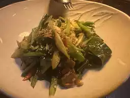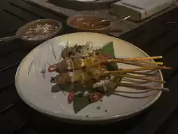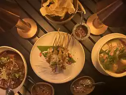 We ordered a set menu that started with crispy rice crackers served with a flavorful tom yum sauce. The main dishes included chicken satay, gaeng hung lay (Northern Thai curry), tom yum goong (spicy shrimp soup), and stir-fried kale with salted fish. The food was delicious and catered well to both Thai and international palates. The restaurant attracts a diverse crowd of tourists, including Thais, Koreans, and Westerners. It's an ideal spot for a family outing to relax and enjoy a change of scenery. Conveniently located not far from Bangkok.