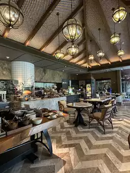 Woke up early and didn't wake up yet. When I stepped into the breakfast zone...my eyes were wide open! There were so many breakfast lines. The aroma of fragrant coffee, the sound of crispy toast, the atmosphere was comfortable with soft sunlight shining through the glass. The seating area was very good. There was a quiet corner to sip a latte or sit and enjoy the view.