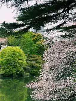 The interior of the cafe is surrounded by a garden and a small pond, and it's like a world in a picture book. It is designed to blend into nature, and the sound of the wind and the sunlight filtering through the trees feel like part of the interior.
