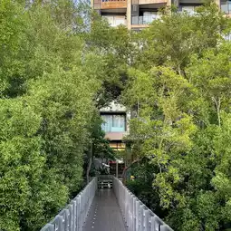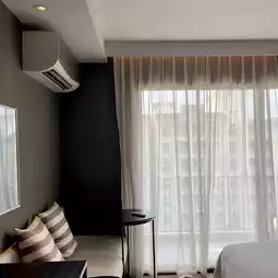 The only downside of this hotel is the outdoor parking area, which lacks a roof. During the summer, it can get quite hot. The rooms are well-designed, resembling a condominium style, with a functional layout that separates different areas effectively. Overall, the experience is quite impressive.