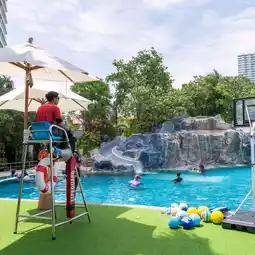 Additionally, there's a fitness center, spa, water slides, a kids' zone, a Kids Club & Playground, water activities like paddleboarding and kayaking, a fire show every Saturday, and a variety of dining options. It's so much fun, you hardly need to go anywhere. Relax and unwind to your heart's content, whether you're here for a relaxing getaway with family or friends. You're sure to fall in love with this place.