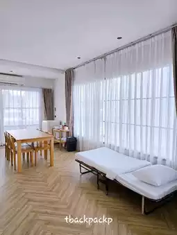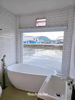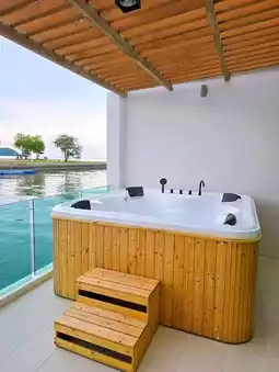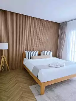 🏡☂️A resort and vacation home with a feel-good vibe in Bang Saray. There are several house types to choose from. We booked a 2-Bedroom Seaview Suite (B3). It has private parking next to the house. The room is spacious and fully equipped with amenities, including a living area, dining table, refrigerator, bathtub in the bathroom with sea views, and a large jacuzzi on the balcony. The house is located next to a walkway, which leads to the end of the bridge where you'll find Cafe Maris, another popular tourist attraction in Bang Saray. 🌴🏖