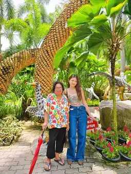 ☂️The entrance fee for Thais is 400 baht per person. This price includes the garden entrance and the tram that takes you to various points within the garden. The magnificence of this place is truly impressive. The gardens are as beautiful as they say. The highlight is definitely the Dinosaur Garden (though we didn't get to see it on the day we visited, as it was hot and we were traveling with adults, so it might not be convenient to walk). Garden lovers and plant lovers will definitely enjoy a visit to Nong Nooch Garden 🌳🌴