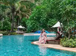 #BeachfrontAccommodation #Pattaya Enjoy a relaxing stroll and a picnic by the sea, while enjoying the large swimming pool at the heart of the hotel with sea views at Ravindra Beach Resort and Spa, Najomtien 😍