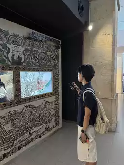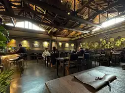 Let's talk about the surrounding atmosphere. It's definitely shaded by trees, and the decor is beautiful, clean, and has a great mood. It's perfect for taking photos. You'll never get bored. There's even a small workshop in front of the shop for kids and adults who love cute, artistic, and adorable things to try while waiting for their croissants to bake.