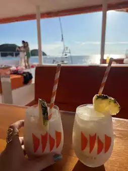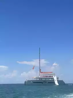 The entire trip is packed with activities 🚤 including snorkeling, clear canoes, paddleboarding, an ocean slide, fancy pool floats, and even fishing. There's also a beautiful photo spot where everyone is sure to take home some chic shots. 📸