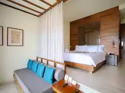 For this trip, I chose a Deluxe Seaview room. The highlight was the private balcony jacuzzi with sea views. Soaking in the water was truly amazing. The spacious room was decorated in warm, inviting tones. The bed was comfortable, and there was a sofa corner for lounging. The bathroom had clear wet and dry areas. The room also had a full range of amenities.