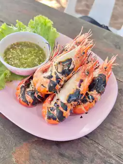 Let me tell you, the Thai-style sashimi here is absolutely amazing! Every time I visit Pattaya, I make sure to stop by this restaurant. I've been here at least three times already, and I'm impressed every single time. The fish is fresh, delicious, and the breeze is perfect. On the day I visited, the weather was pleasantly cool, not hot at all. Normally, I would order squid sashimi as well, but they only had large sizes left that day, which was too much for just two people, so I skipped it. Instead, I tried the marinated shrimp, and it was just as tasty. Overall, it was a fantastic experience. If you're looking to try Thai-style sashimi, I highly recommend this place!