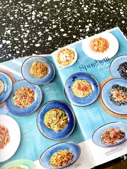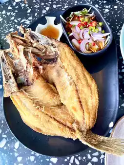 The food is delicious. The pizza is delicious. The fried sea bass with fish sauce is crispy, but the sauce is a bit too sweet. The shrimp macaroni is delicious. There's a wide selection of Thai, seafood, and Italian dishes, along with a wide selection of desserts and drinks. Overall, the food is good, and the prices are reasonable.