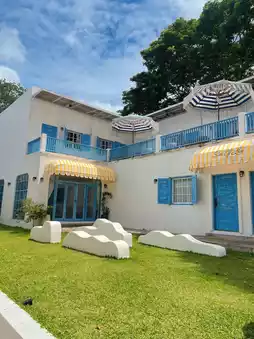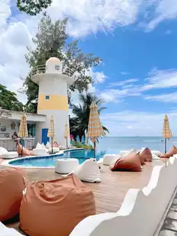This cafe, restaurant, and accommodation (probably about 5 rooms) are located right on the beach, with direct access to the beach. There's also a swimming pool and a beachside bar for great photo opportunities.