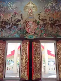 The temple of Luang Pho Dam boasts beautiful architecture, decorated with intricate stucco patterns. The interior exudes a tranquil and sacred atmosphere.
