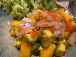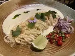 Nithan Pattaya - Coffee Tel is located in Sattahip District, Chonburi Province. There's plenty of parking, so don't worry about finding a spot! The interior is luxurious and the atmosphere is amazing. It's perfect for chilling out and chatting with friends, family, and even the occasional group. Most importantly, the food and drinks are excellent. There were three of us and we ordered a pizza, spaghetti carbonara with salted fish (the restaurant's signature dish). It looked so delicious, so we ordered it. I didn't expect the carbonara with salted fish and some kind of salad with ripe mango to go together. It was so refreshing. We finished off with a piece of cheesecake with a chocolate chunk on top for a light palate cleanse. It was incredibly smooth and filling. It was a complete meal, complete with beautiful photos, and the atmosphere was amazing, along with the beautifully presented and delicious food. This is a cafe I highly recommend to everyone.