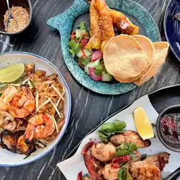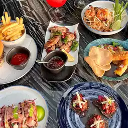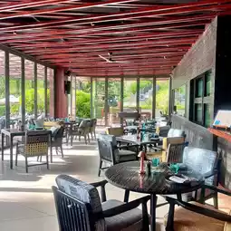 “Fish Club,” an international restaurant hidden within the luxurious Andaz Pattaya resort, features a beautifully decorated interior dominated by brown tones. There are both indoor and outdoor seating options, offering views of the pool and sea, with mountain views across the street. It's incredibly relaxing, offering a truly relaxing dining experience.