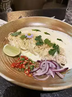 Driving to Pattaya, you can't miss stopping by the famous Nithan Coffee's Tale, which now has multiple branches. Today, we're at the branch on Sukhumvit Road from Central Pattaya. Just follow Google Maps and you'll find it easily. The atmosphere is very luxurious. The interior is beautifully decorated, with plenty of tables to accommodate customers, and the food is excellent. We ordered spaghetti and salad, which tasted different and different from the usual dishes. It was delicious. We came at night, so it wasn't too crowded. If you're in Pattaya, stop by and give it a try.