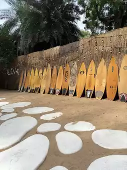 Cave Beach Club is a beachfront cafe and club in Pattaya (Jomtien / Na Jomtien). Decorated in a Balinese and Bohemian style, it combines minimalism with natural materials such as bamboo and palm leaves. Decorated with kayaks, surfboards, and more, the atmosphere is very chill, perfect for relaxing, chatting, taking photos, and watching the sunset. The shop is open late (until midnight).