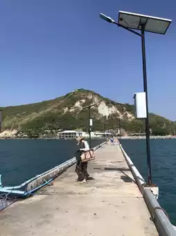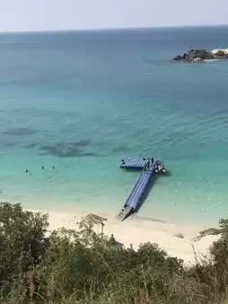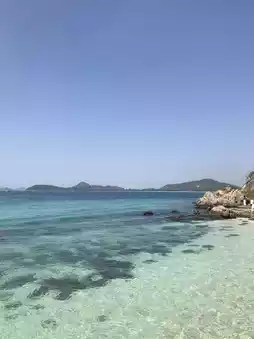 Koh Samet is incredibly beautiful. The water is crystal clear and peaceful, and there are so many activities to do. The island is under military control and supervision. Boats are available to take you to the island from Sattahip. The water is already crystal clear from the shore, and the beach is incredibly white. The sand is fine and inviting, and the water is crystal clear. There are so many activities to do here, like snorkeling. They have small boats that take you around the water. The coral reefs are abundant, and you can play beach volleyball and go kayaking. You could easily spend a whole day on this island. It's a great place to take your family.