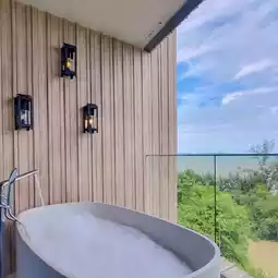 สำหรับห้องพักของที่นี่มีหลาย Room Type เลยนะคะ เราเลือกพักห้อง Exclusive Ocean View with Bathtub 🛁 เป็นห้องที่วิวสวยมาก นอนแช่อ่างริมระเบียง มองออกไปเห็นทะเล เอาเป็นว่ามาพีกที่นี่คือตัวเปียกตลอดเวลา ว่ายน้ำที่สระด้านบนเสร็จ ก็ลงมานอนแช่น้ำต่อ นอกจากนี้ช่วงเย็นเค้ายังมี Seafood Buffet fDinner ด้วยแหละ เรียกได้ว่าพักที่นี่ 2 วัน 1 คืน ไม่ต้องออกไปไหนเลย
