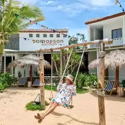 Seaside accommodation in Samaesan. They have activities, beautiful photo spots, cafes and restaurants. Come to one place, no need to go anywhere. Drive from Bangkok for only 2 hours and you will see beautiful views and clear sea water. It's the best relaxation.