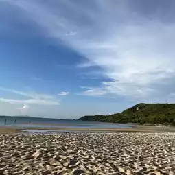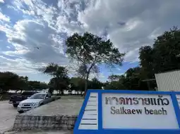 Sai Kaew Beach, Sattahip District, Chonburi Province, a training center for new soldiers, is open to tourists. It is a nature conservation tourist attraction that is still rich in nature. The white sand beach is clean and the water is clear enough to see the fish. The atmosphere is peaceful. Sai Kaew Beach, or the original name, Noi Beach, is located in the area of the Sattahip Naval Academy, in the Ao Noi area. It is a small beach surrounded by mountains. The atmosphere is peaceful. The sand is not steep. It is white and fine mixed with coral, similar to the beaches on the Andaman coast. It is about 1.7 kilometers long. The sea water is clear and clean. You can see the schools of fish. The water level is not very deep. It is suitable for water activities such as swimming, banana boating, and kayaking. The area around the beach is shady with trees along the beach. It is suitable for sitting and eating, enjoying the breeze, sunbathing, and doing various activities. On the beach, there are shops, restaurants, bathrooms, Thai massage, various facilities, and various service shops such as mat rental shops, beach beds, and marine toys that are divided into zones, making it look neat. At the end of the beach, there are boats for tourists who want to take a boat to see the nearby islands. #saikaewbeach #chonburi