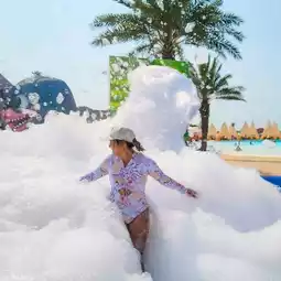 🤍 Let's talk about the water park. Each ride is so grand and magnificent. I like the most when they release bubbles, running into the bubbles is so much fun, like being a kid again, playing without worry. If anyone has knee pain and can't walk, go to the Jumanji ride, it's not many floors but so much fun😆 Or you can go to the kids zone, there are many fun slides. When you're tired, you can lie down and chill at the artificial sea and let the waves hit you🌊 Lie on the float, watch movies, listen to music on the screen, and chill out. Don't miss 3 more places: Surf's, if you don't know how to play, the staff will teach you. I like it so much I want to stay here all day. The next place is Go-Kart, you can compete in speed competitions in a big field with your friends, it's so much fun. Another point is mini golf, play with friends, soft but no less fun.