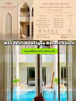 Navakiri boutique resort, Satun Province For those who want to relax, don't want to go anywhere, want a great atmosphere, this is the hotel. Excellent service, clean rooms, complete equipment, snacks, breaks, breakfast, full, swimming pool, free breakfast, great value, once you go, you want to go again. For anyone who comes to visit Satun, let this place be another choice for relaxation. #navakiriboutiqueresortsatun