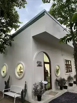 Fam Farm & Cafe Satun 🐓🐇⛰️ is a small farm with a cafe, drinks, bakery, and snacks. 🍤📍 Located on Soi Ban Khok Phayom 1 (behind the kindergarten, near Ratchaprapha Stadium), the entrance is small, so don't be alarmed. Follow the GPS. Parking is available. 🚘🚗💰 There's a 20฿ entrance fee, which can be used to discount animal feed or food and drinks. 🐓 They have chickens, mini goats, deer, fish, capybaras, turtles, rabbits, and ostriches. Overall, I highly recommend it. It's a small, warm, and relaxing activity. You can get up close and personal with the goats. They're so playful! 😍