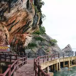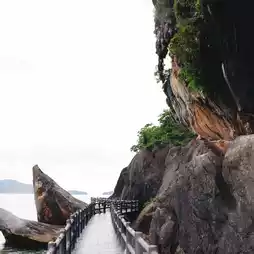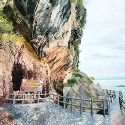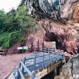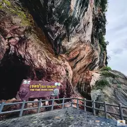 💦Located in the area of the Petra Islands National Park, which is one of the Satun Geoparks that has just been declared a Global Geopark. The special thing about this time bridge is that there is a natural phenomenon at one part of the cliff where two rocks from two eras collide: red sandstone from the Cambrian period (542-488 million years old) and gray limestone from the Ordovician period (488-444 million years old) caused by the faults of the earth's crust causing the rocks from the two eras to move and collide.