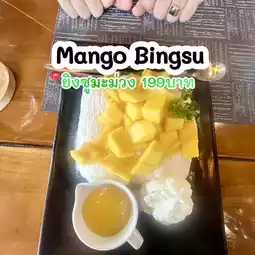 There are many corners to choose from to sit and sip coffee and eat snacks. We sat in the air-conditioned area. The room is beautiful and suitable for organizing a light party. 🍹☕ We ordered a set of food for 1,500 baht. It was so wow. Sour curry with stir-fried sea bass with squid and salted eggs, stir-fried morning glory with eggs, fried fish cakes, fried sea bass with salt. There is also rice. Let me tell you that the food tastes rich and delicious. 👍👍👍 After eating, follow with dessert with Mango Bingsu for 199 baht. Hey, it's really delicious, as the shop's staff cheered.😍😍😍