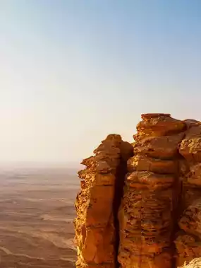 Just outside Riyadh, the Edge of the World (Jebel Fihrayn) is where the Arabian Desert drops off a dramatic 300-meter cliff—a breathtaking scar left by ancient tectonic shifts. This isn’t just a viewpoint; it’s a raw, otherworldly landscape where the vast emptiness of the desert meets the horizon in an unbroken line.