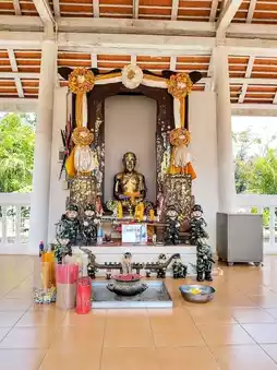 Phra Borommathat Sawi: The temple's most striking feature is its ancient chedi, which contains the relics of the Lord Buddha. This chedi features a Sri Lankan-style design, with a square base and a round bell-shaped body. It is decorated with beautiful stucco patterns, a clear reflection of the era.