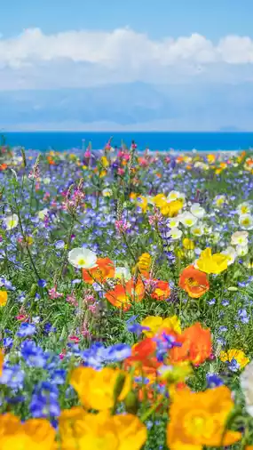 - Lingxiu Bay has patches of red wildflowers.