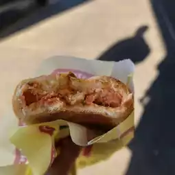 The crispy long bread is filled with salmon meat. You can taste salmon in every bite. Because it is a store in the fish market, its salmon has no fishy smell at all. It is very suitable for breakfast