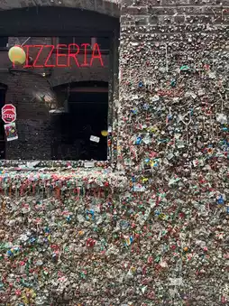 Just nearby. The entire wall is covered in colorful gum, creating a chaotic yet fascinating vibe😂. A must for a memorable photo📸.