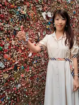 I mustered up the courage to take a perspective photo with the gum wall—life achievement unlocked ✌️✌️✌️. A selfie with the world's most disgusting gum wall 🤪😜.