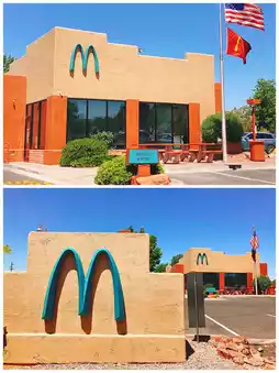 In order not to spoil the scenery, McDonald's in Sedona has an earth-colored exterior that gives off an earthy feel and a stylish turquoise blue logo mark... 📝