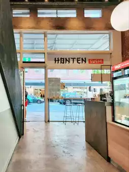 There's a small seating area if you want to dine in, and coffee is also available (though we didn't try it).