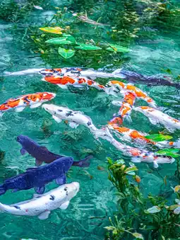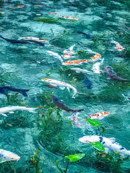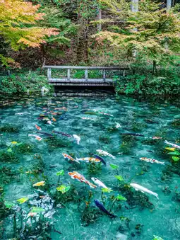 The spring water was crystal clear, and the colorful carp were swimming as if they were floating, which was beautiful🧊
