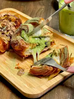 In addition to pastry, they also sell staple food here, but since my friends and I were already full, we ordered a Matcha Azuki Mochi and French fries.🤤🤤