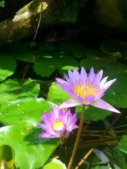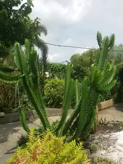 It's a delightful space, cultivated by botanists, featuring a variety of tropical plants and lovely flowers.