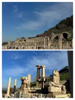 In the ancient Greek and Roman periods, Ephesus was one of the five largest cities in the Roman Empire. It was extremely prosperous at that time. Walking in the ancient city, it seems as if time has gone back. You can see the remains of some shops and even clearly make out the wheel marks of the carriages of that time. These ancient traces all tell of the glory of the past. At that time, there were people coming and going here, the hawkers' cries and the rumble of horse-drawn carriages intertwined together, creating a lively market scene.