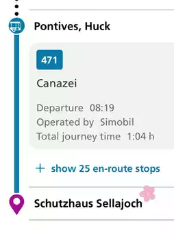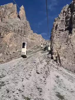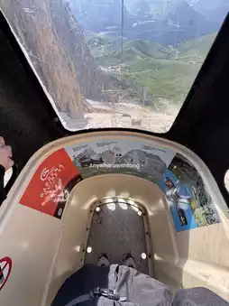 Float in a tiny "coffin" lift, 💨 surrounded by the majestic Sassolungo mountain views. 🚍 How to get there: Take Bus 350 from Bozen, Busbahnhof → get off at Pontives, Huck, then Bus 471 → get off at Schutzhaus Sellajoch. ⏱️ Total travel time is approximately 1 hour and 50 minutes. 🎟️ Tickets: 🚌 Mobilcard South Tyrol (Mobilcard Südtirol) 3 days €30/person (valid for the second day). 🚡 Gardena Card 3 days €118/person. Prices vary each year, so check the website for that year. 📱 Use the Südtirol Mobil app to conveniently check routes and bus schedules.