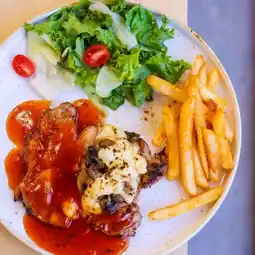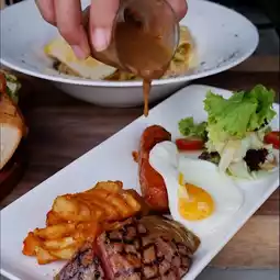 The place is melted down a bit into the alley. The ice mocca is cute, it's in the shape of a bear. For those who like matcha sweetness, you can also try the cantee topping. There's a variety of weight to eat", spaghetti carbonara & chicken salad are okay. The portions are also big, really full. The price is still right in the pocket.