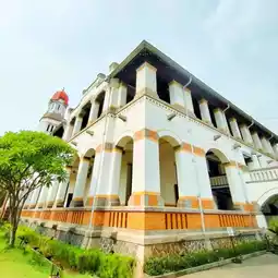 Lawang Sewu (literally means a thousand doors) is a popular tourist attraction in Semarang city. It's good to visit with friends and family. Kids also can enjoy Lawang Sewu, especially if they love trains. It's located near the downtown. So, if you stay around Simpang Lima, you only need less than 10 minutes to reach this site. Nearby Lawang Sewu, there's a monument called "Tugu Muda" and a museum called "Mandala Bhakti" (a military museum).