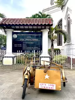 In Kota Lama Semarang there are many restaurants and cafe nearby, you can see many restaurants here from the one who sells Javanese/Indonesian food until Western and Japanese food. Don’t forget to try street food in this area such as: Telur Gulung.