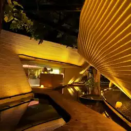 Consistent with the concept of urban tropical architecture, this place has a really spacious area dominated by outdoor open space, all the way from the skywalk to calming pool around the entrance. The indoors are warm, calming, and have lots of aesthetic corners, such a perfect place to enjoy various of delicious foods and coffee with beans from fugolcoffeeroasters. While in the night time this place turns into cocktail bar which gives a totally different vibes and unique hang out experience.