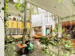the green of the plant is quite pleasing to the eye, its texture is refreshing. Because Semarang is very hot, so it still feels hot. But here there is also an indoor one if you want something cool. There is a fan that cools you down if you want to be outdoors, so it's not too hot.